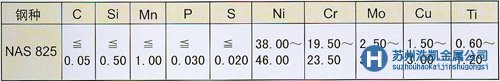 NAS 825是含高鎳的高級耐腐蝕合金,對氧化性以及非氧化性的酸而言其耐腐蝕的性能極其優秀。 用途 各種化學工業用設備以及機器,特別推薦在腐蝕性很顯著的情況下尤其適用。 化學成分(%)
