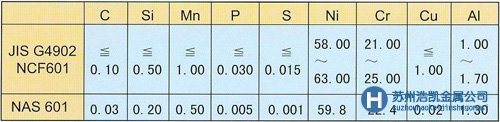 NAS 601是含有Cr、Al的鎳基耐熱、耐氧化合金,具有很高的耐高溫強(qiáng)度以及良好的耐氧化性,耐滲碳性和耐滲硫性。特別是在強(qiáng)烈的溫度變化下對于反復(fù)氧化用途具有優(yōu)秀的耐氧化皮脫落性,因此,被用于各種熱處理爐的內(nèi)壁以及柴油車的電熱塞部件等。