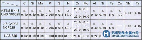對應規(guī)格 ASTM B 443/UNS N06625 ASME SB 443/UNS N06625 JlS G4902/NCF625