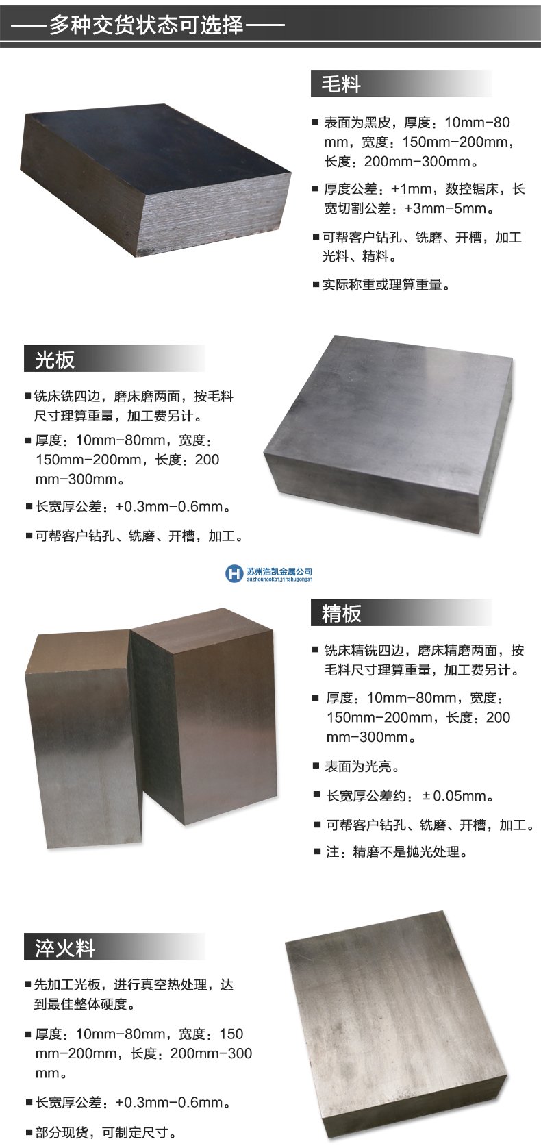 蘇州浩凱SKD11模具鋼物流配送運輸地區:北京,上海,重慶,天津,江蘇南京_徐州_蘇州_無錫_昆山_揚州,太倉_吳江_連云港_泰州_鹽城_鎮江_南通_常熟_常州_張家港,浙江溫州,杭州,寧波寧海_余姚_臺州黃巖_金華_紹興_嘉興,福建福州_廈門,廣西南寧_柳州,安徽合肥_安慶_蚌埠_巢湖_淮安_蕪湖_淮南_黃山_滁州_宣城,山東濟南_青島_日照_濱州_煙臺_威海_濟寧_聊城_臨沂_淄博,湖南長沙,重慶,河北石家莊,河南鄭州_洛陽_開封,湖北武漢,江西南昌,陜西西安,山西太原及云南昆明。歡迎各地模具廠商來電垂詢SKD11模具鋼價格和SKD11模具鋼熱處理機加工事宜。目前我司SKD11模具鋼現貨庫存表統計數量為12噸。