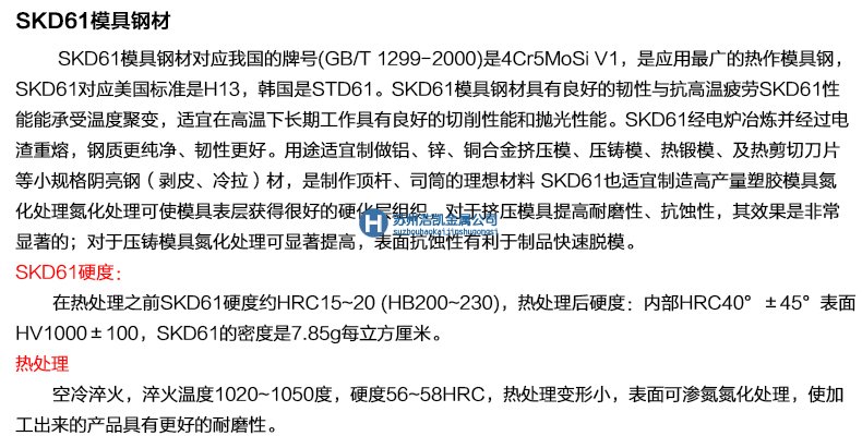 蘇州浩凱SKD61模具鋼物流配送運(yùn)輸?shù)貐^(qū):北京,上海,重慶,天津,江蘇南京_徐州_蘇州_無錫_昆山_揚(yáng)州,太倉_吳江_連云港_泰州_鹽城_鎮(zhèn)江_南通_常熟_常州_張家港,浙江溫州,杭州,寧波寧海_余姚_臺(tái)州黃巖_金華_紹興_嘉興,福建福州_廈門,廣西南寧_柳州,安徽合肥_安慶_蚌埠_巢湖_淮安_蕪湖_淮南_黃山_滁州_宣城,山東濟(jì)南_青島_日照_濱州_煙臺(tái)_威海_濟(jì)寧_聊城_臨沂_淄博,湖南長沙,重慶,河北石家莊,河南鄭州_洛陽_開封,湖北武漢,江西南昌,陜西西安,山西太原及云南昆明。歡迎各地模具廠商來電垂詢SKD61模具鋼價(jià)格和SKD61模具鋼熱處理機(jī)加工事宜。目前我司SKD61模具鋼現(xiàn)貨庫存表統(tǒng)計(jì)數(shù)量為12噸。