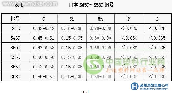 由于碳素鋼具有價格便宜、加工性能好,原料來源方便等優點,因此對于{TodayHot}制造形狀簡單的小型塑料模具或精度要求不高、使用壽命不需要很長的塑料模具,多采用這類鋼制造。中國牌號常用45、50等。目前,國際上較廣泛使用的鋼號見表1。